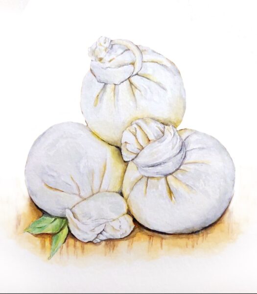 Vår håndlagde burrata er en smak av ren luksus; en perfekt balanse mellom en mild, melkeaktig syrlighet og en rik, fløyelsmyk kjerne som smelter på tungen.