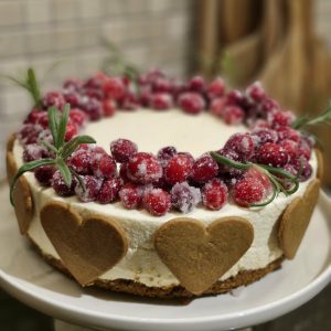 Pyntet med sukrede tranebær som gir frisk smak og et klart julepreg.