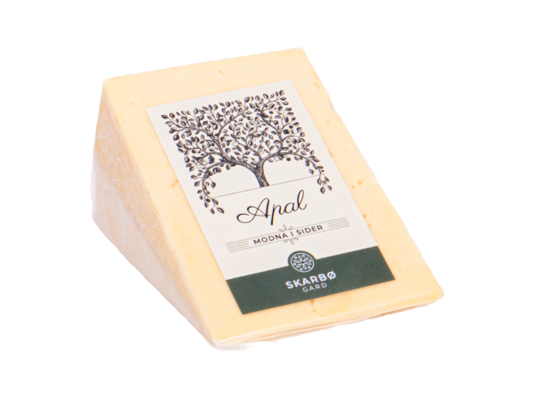 I Apal får du heile Skarbø Gard i ein liten bit: osten er laga av mjølk frå kyrne våre, kombinert med sider frå eple dyrka på garden.